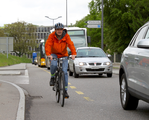 Um das grosse Potential des Veloverkehrs weiter ausschöpfen zu können, sind aus Sicht von Pro Velo jedoch weitere Anpassungen des Verkehrsrechts nötig. Beispiele sind ein gesetzlicher Mindestabstand beim Überholen von Velos, ein Überholverbot von Velos in Kreiseln und Erleichterungen beim Kinder- und Warentransport mit Lastenvelos. „In unseren Städten sind im besten Fall 20 % der Menschen mit dem Velo unterwegs, in nordischen Ländern sind es bis zu 50 %. Das wollen und können wir auch“, ist Matthias Aebischer überzeugt.